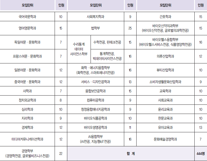 444명 선발의 자기주도인재전형입니다.