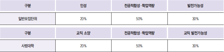 일반모집단위와 사범대학의 면접평가기준은 조금 다르며,